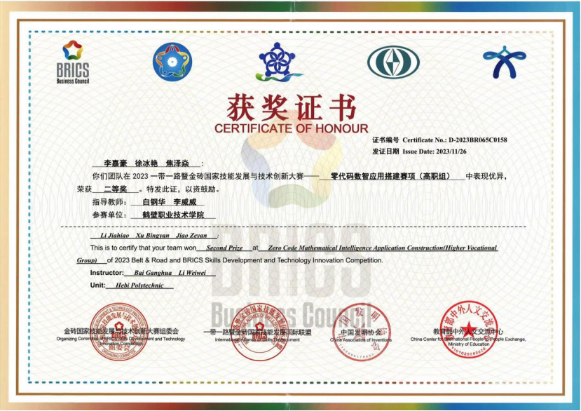 2023“一带一路”暨金砖国家技能发展与技术创新大赛——零代码数智应用搭建赛项全国总决赛二等奖