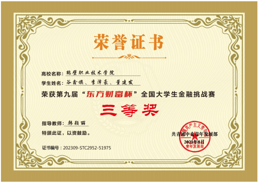 第九届“东方财富杯”全国老员工金融挑战赛 三等奖