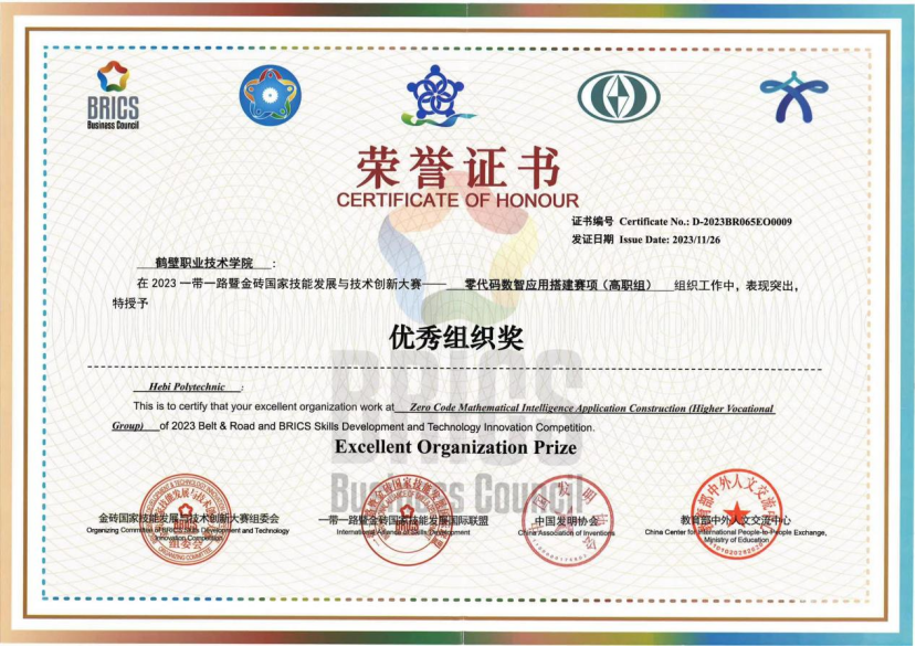 2023“一带一路”暨金砖国家技能发展与技术创新大赛——零代码数智应用搭建赛项全国总决赛优秀组织奖