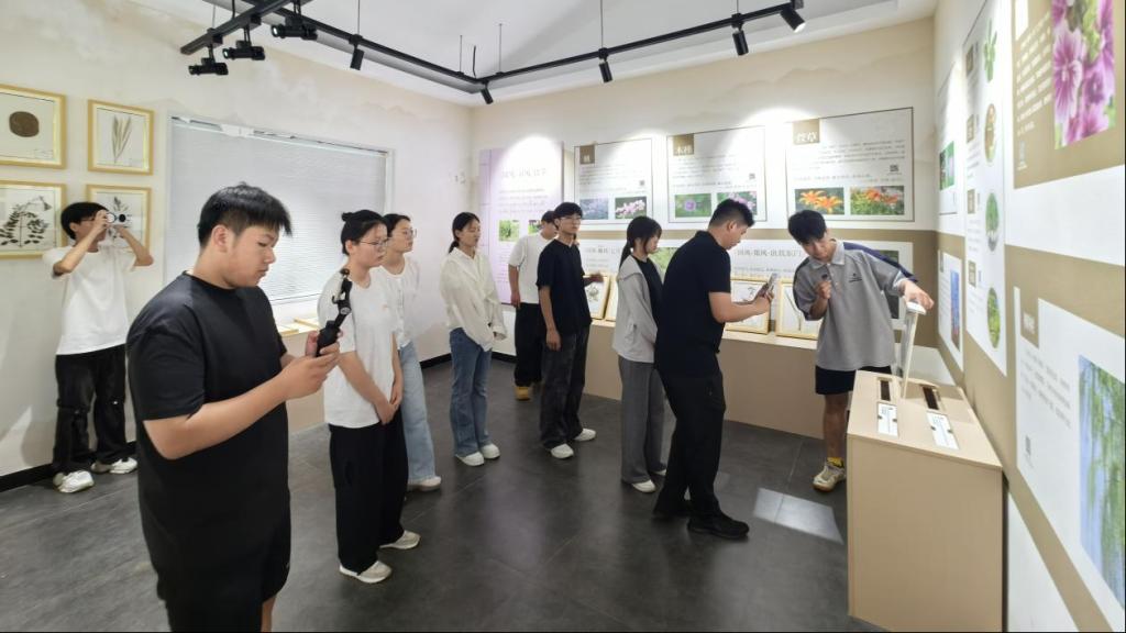 科普类直播“淇水关植物园科普馆之旅”由团员担任科普主播,通过镜头带领网友游览植物园和科普馆,详细讲解诗经植物特性、生态价值及传统文化故事,带领线上观众沉浸式体验植物标本互动装置,生动呈现自然与文化的交融。