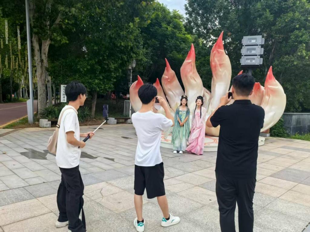 7月20日至8月14日的实践执行阶段,团队围绕“内容传播与在地赋能”双线推进,取得了丰硕成果。在内容创作方面,实践团拍摄制作的《诗经植物探秘》《汉服打卡攻略》等系列短视频在抖音、小红书、B站等平台获得良好反响。
