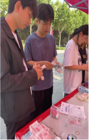 活动当天,阳光明媚,春风和煦,社团准备了点钞及相关税法趣味题,过往的同学们们纷纷驻足参与到活动当中。单指单张、扇面点钞、四指四张、五指五张,只见同学们运用自己擅长的点钞方法,将一沓沓点钞券迅速而准确地清点了完毕。趣味抢答环节也很精彩,大家热情高涨,或独自思考、或三两讨论,争相参与,学到了更多税法知识及点钞技巧。