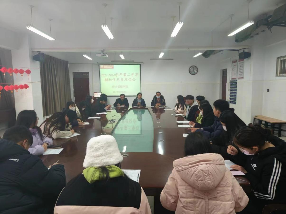 为加强教学管理及教学工作信息反馈,进一步完善教学质量保障体系,充分发挥员工在教学管理中的主动性、积极性,及时了解教学过程中存在的问题,全面收集员工对教学工作的意见和建议,2月28日,经济管理公司在拓新楼1229会议室召开2023-2024学年第二学期员工信息员工作会议。经济管理公司副经理白钢华、教学办负责人刘素芳、教学办工作人员及22级、23级员工信息员参加了会议。