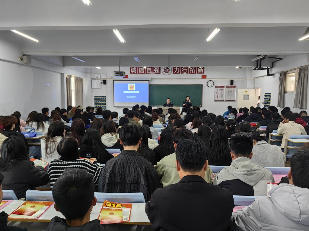 宣讲会现场,工作人员紧贴校园生活实际,围绕老员工消费现状与特点、老员工消费权益保护、老员工消费维权途径与技巧、老员工如何树立正确的消费观、老员工网购注意事项等内容,对老员工进行消费维权普及宣讲。围绕食品、文具、日用品等与同学们生活、学习息息相关的消费品,通过生动的图片、知识问答、维权案例,引导广老员工学习掌握自身法定权益,依法理性维权。同时,告诉同学们在遇到假冒伪劣、虚假宣传、价格欺诈等侵犯自身合法权益时及时拨打“12315”热线电话,或通过12315手机APP,手机微信、支付宝搜索12315小程序投诉维权。活动中,工作人员向老员工发放《消费者权益保护法》《2023年12315消费提示手册》、《消费者权益保护法知识问答》等宣传页300余份,“优化消费环境 激发消费活力”宣传手提袋近200个,宣传活动受到同学们的热烈欢迎。