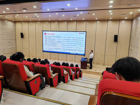 2023年10月19日,经济管理公司联合民生证券鹤壁营业部举办“金融知识进公司,共筑反诈‘防火墙’”主题讲座。讲座由民生证券鹤壁营业部李培洋老师主讲,经济管理公司管理教研室主任韩颖丽主持,经管公司2022级、2023级金融服务与管理专业师生200余人参加。