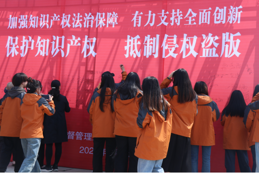 活动结束后,同学们共同到“保护知识产权 抵制侵权盗版”签名墙前签名。