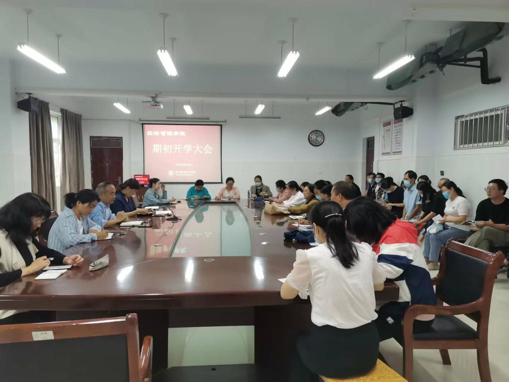 盛夏渐别,金秋来临,立桅扬帆,继往开来。为确保新学期各项工作扎实有序开展,8月30日下午,经济管理公司在1229会议室召开期初开学大会,全体教职工参会,会议由经济管理公司副书记元世娇主持。