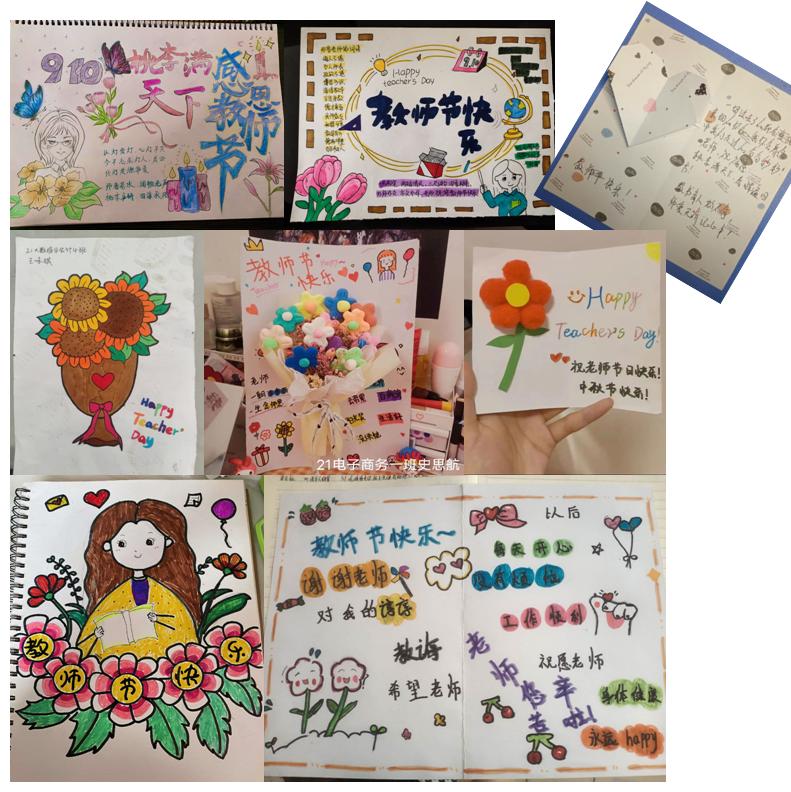经济管理公司员工会向全校员工发出号召——在教师节里为敬爱的老师献上自己真诚的祝福。通过给老师打电话、发短信、写信、唱歌、跳舞、画画、做贺卡、拍视频的形式,送上一声真挚的问候,向敬爱的老师献上教师节的问候:“老师,教师节快乐!祝您永远健康、幸福!”活动发起后,同学们积极响应,通过自己的方式向老师们传递了莘莘学子们最真诚的祝福,以真诚的感恩行动伴随着公司教师度过了一个温暖贴心的教师节!