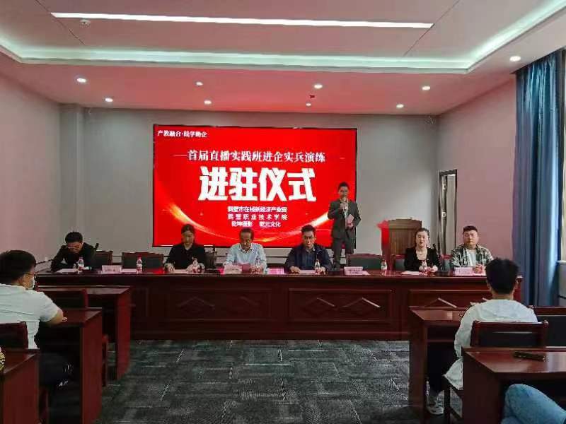 在创新驱动发展战略背景下,产教融合成为高等教育深化改革的重要举措。4月24日,经管公司电商专业首届直播实践班进企实兵演练今日启动。经管公司副书记元世娇、副经理白钢华、产业园总经理、企业代表、员工代表等参会。
