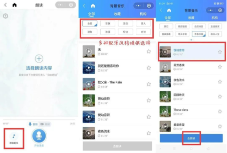 ④朗读时,选择喜欢的配乐,可通过手机音量键调节配乐声音大小,使作品更完整,情感丰满,效果更好。