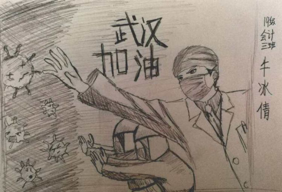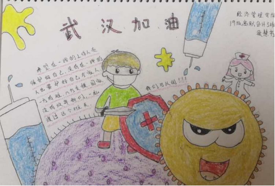 向奋战在抗击疫情第一线的工作人员致敬,为武汉加油,为祖国加油,鹤职院经管公司学子用手抄报、绘画、视频等形式表达感谢之情。